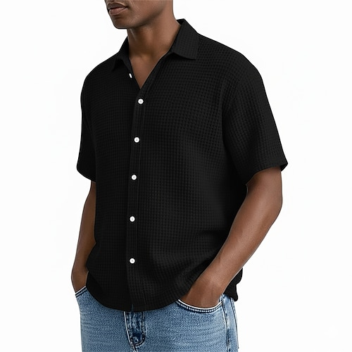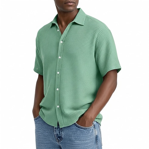 Per uomo Camicia Camicia a nido d'ape Tessuto Camicia casual Camicia con Bottoni Nero Bianco Verde chiaro Borgogna Blu reale Manica Corta Semplice Colletto a Camicia Casuale Quotidiano Abbigliamento