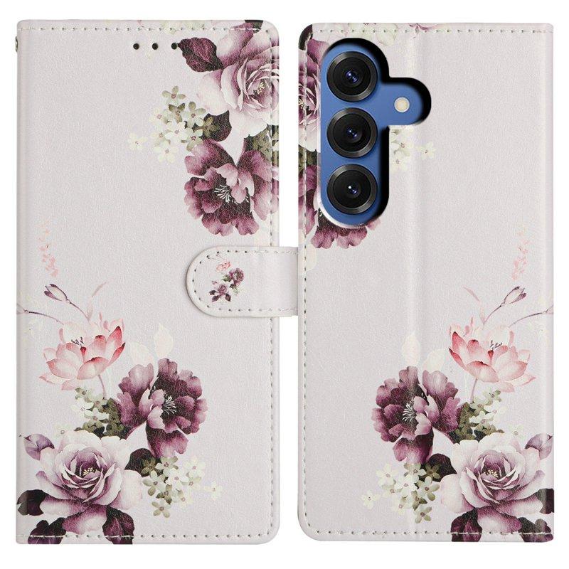 Samsung Galaxy S26 Plånboksfodral Mönstertryck Konstläder Flip Ställ - Blomfält