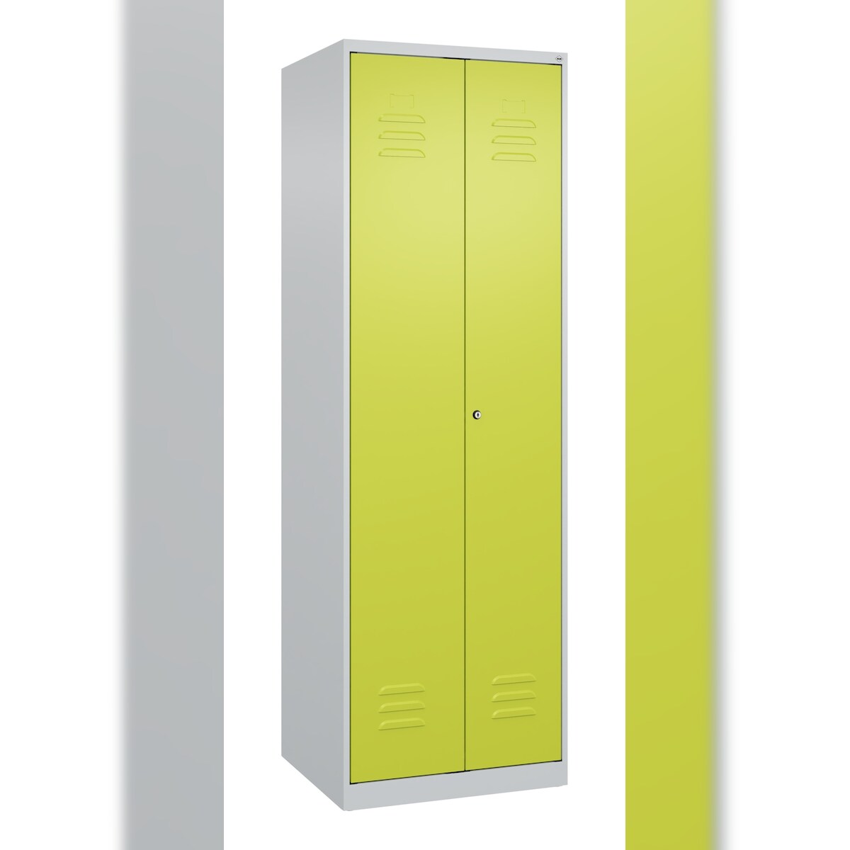C+P Aufbewahrungs Doppel-Spind Classic PLUS, 2 Abteile je 4 Fachböden, HxBxT 185x60x50cm, Zylinderschloss, Hellgrau/Clowngrün von PROREGAL