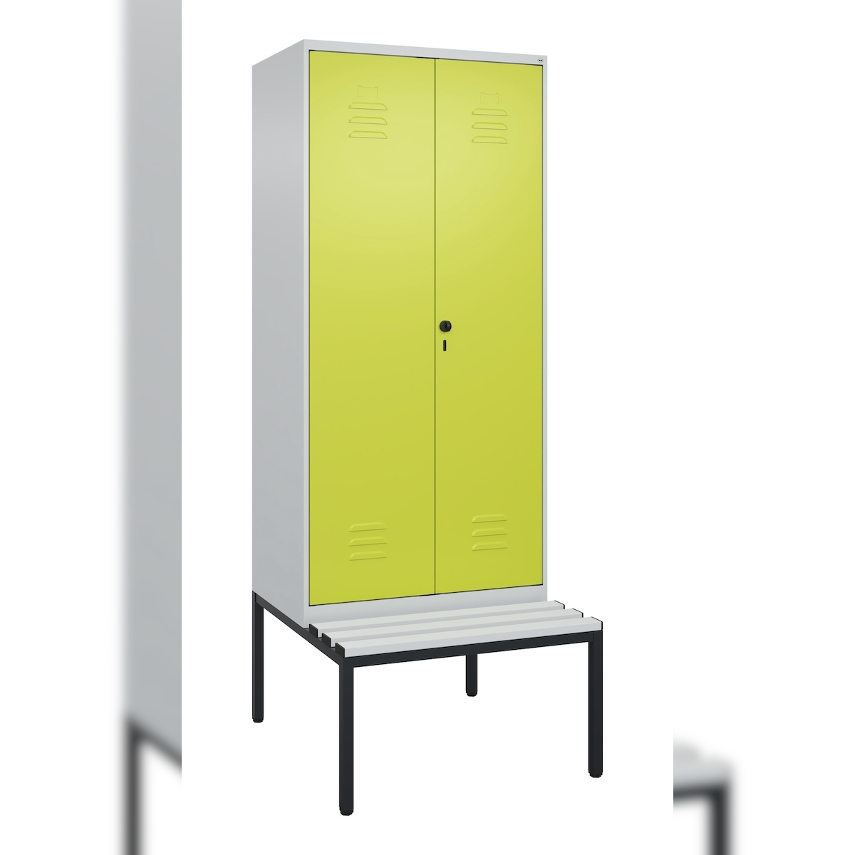 C+P Spind Classic PLUS, Kunststoff untergebaute Sitzbank, 2 Abteile, HxBxT 212x80x82cm, Zylinderschloss, Hellgrau/Resedagrün von PROREGAL