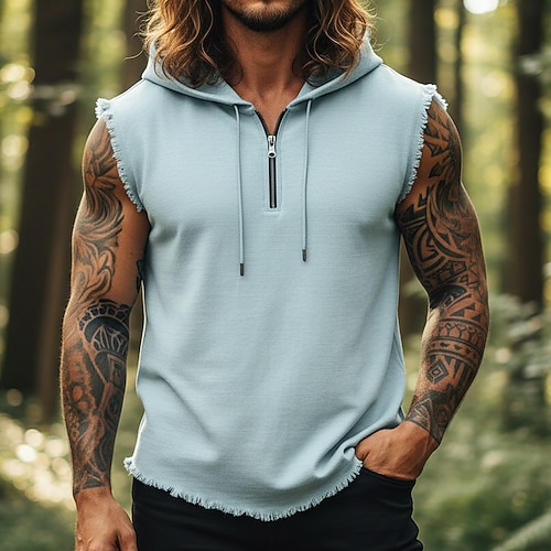 Per uomo Camicia di lino Canotta Gilet Canottiera Senza Maniche Con Cappuccio Estate Tutte le stagioni Semplice Moda Streetwear Sportivo Zip a un quarto Casuale Palestra Streetwear Blu Nero Rosa