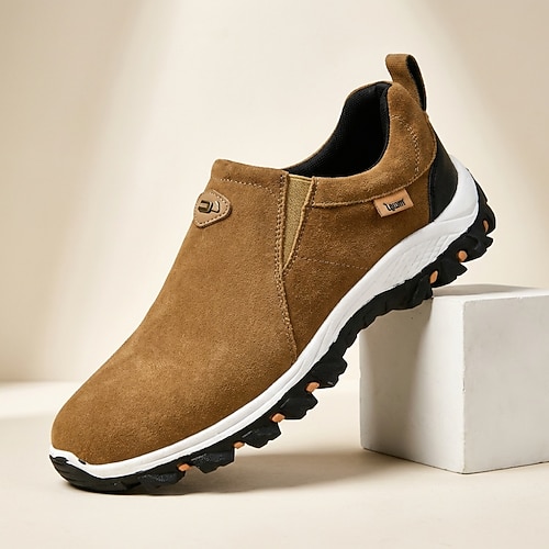 Scarpe casual da uomo marroni slip-on per esterni, leggere e comode, con effetto scamosciato, ideali per camminare tutti i giorni, viaggiare, spostarsi, per il fine settimana, per il tempo libero all'aperto e per uno stile sportivo casual.