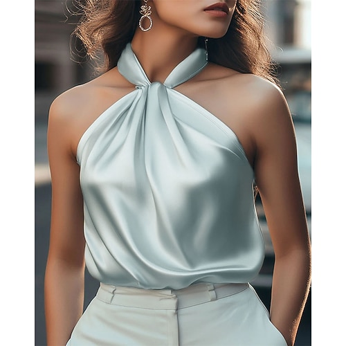 Per donna Camicia Elegant Top in raso Top estivi Arricciato Patchwork Drappeggiato Tinta unica Semplice Elegante Vintage Signore Senza Maniche All'americana Top Regolari Quotidiano Lavoro Ferie Grigio
