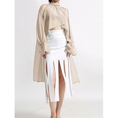 Per donna Top Eleganti Patchwork Drappeggiato Tinta unica Semplice Elegante Signore Classico Manica Lunga Manica a Lanterna Girocollo Top Regolari Quotidiano Lavoro Uscire Blu Bianco Vino Azzurro