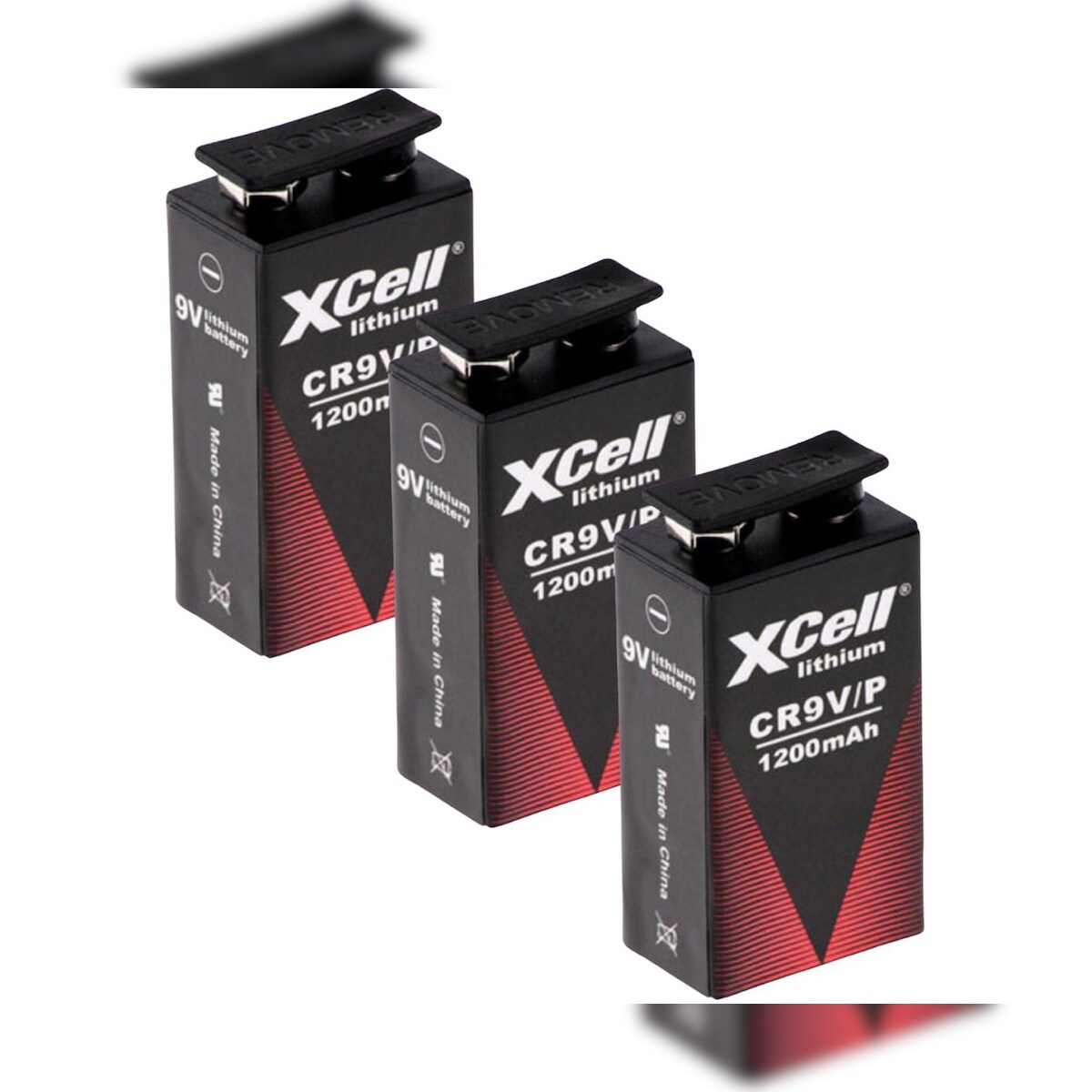 3x XCell Lithium 9V Block Hochleistungs- Batterien für Rauchmelder / Feuermelder - 10 Jahre Batterie Lebensdauer