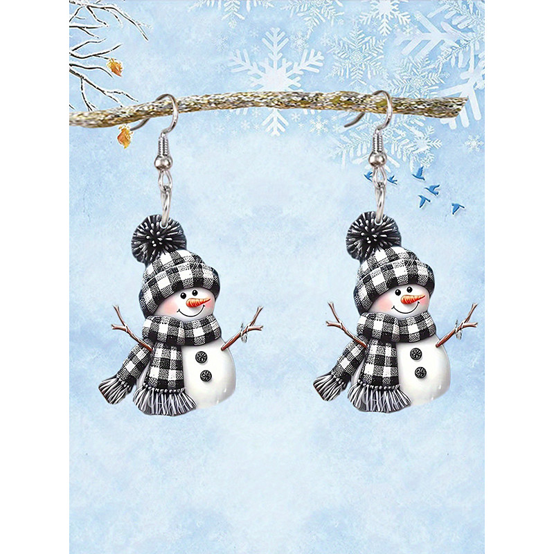 Women's Christmas Acrylic Snowman Earrings – Festive Design with Scarf and Hat, Perfect for Holiday Parties Winter Wear