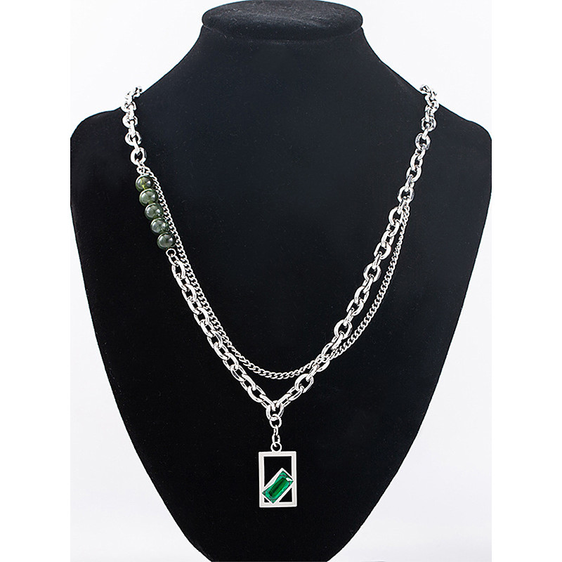 Men's Stainless Steel Chain Necklace with Green Gemstone Pendant - Stylish, Durable, Perfect for Casual and Formal Occasions