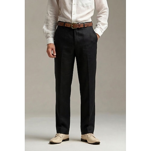 Uomo Cotone Lino Pantaloni Eleganti Pantaloni casual Quotidiano Ufficio Neutro Moda Casual Nero Bianco Blu marino scuro Tinta unica Vestibilità su misura Lungo Inelastico