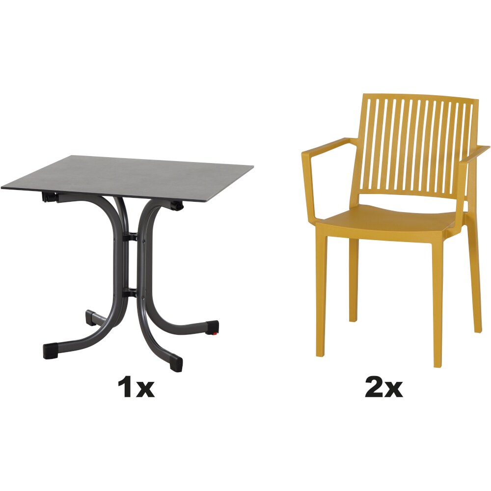 SIENA GARDEN Urban Lights Set 3teilig Lane Sessel gastrotauglich mustard mit Tisch Sola 80x80