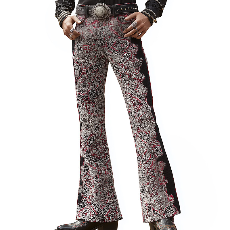 Men's Geometric Pattern Disco Pants 60s 70s Bell Bottoms Mid Waist Western Vintage Retro Outdoor Vacation Casual Side Pockets Flared Leg Pants Trousers Spring Fall 3D Print Black / Red Blue Black