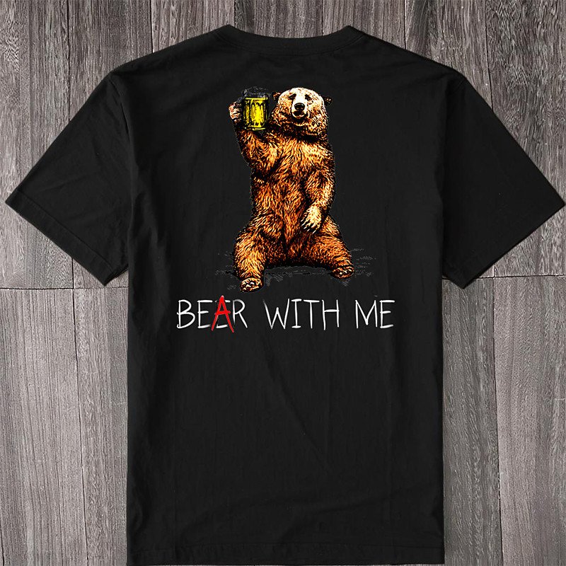 Men's Humorous 'Bear With Me' Beer Pun Short Sleeve Graphic T-Shirt