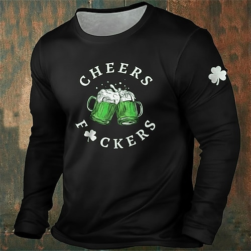St. Patrick Herren Grafik Kleeblatt Oktoberfest-Bier Glücklicher Ire T Shirt T-Shirt Kurzarm T-Shirt 3D-Druck Rundhalsausschnitt Hemd Täglich Designer Lässig Sport im Freien Ferien Ausgehen Schwarz