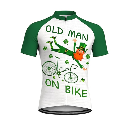 Herren St. Patricks Trikot Radtrikot Downhill-Trikot Vierblättriges Kleeblatt Oktoberfest-Bier Fahhrad Kurzarm Fahhrad Trikot T-Shirt Oberteil mit 3 Gesäßtaschen UV-beständig Schnelltrocknend Mit