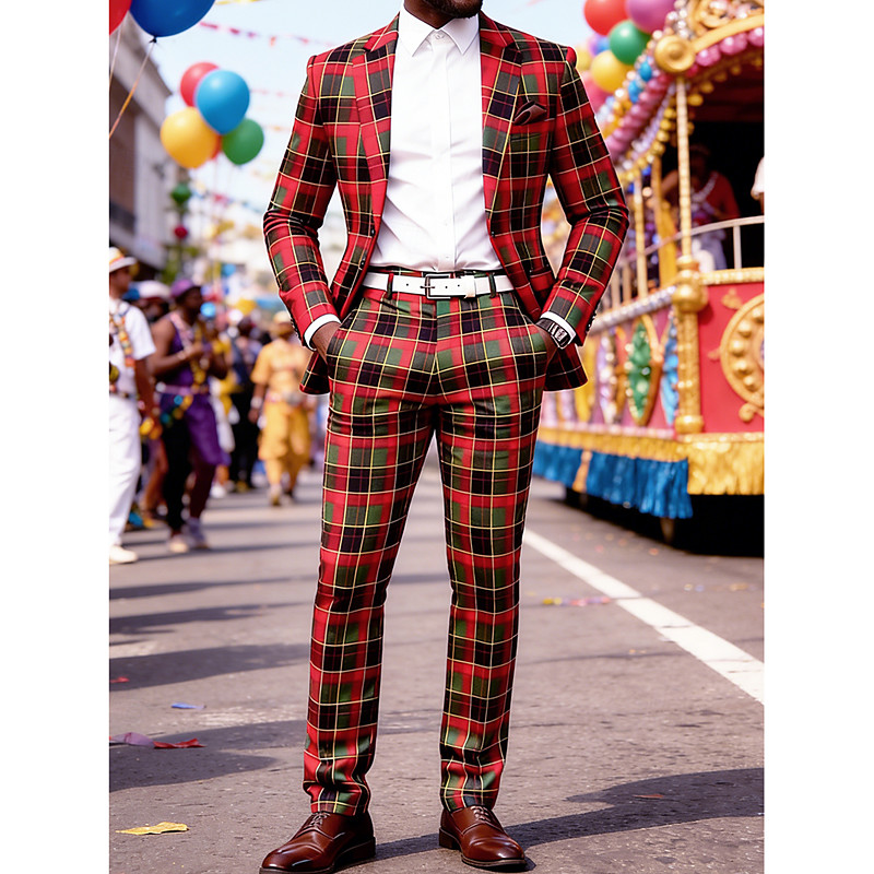 Men's BlazerDress Pants Blazer Suits Business Work Evening Party Elegant Neutral Fall Winter Terylene Plaid 2 Piece Single Breasted Blazer Red