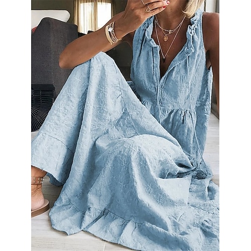 Per donna Abito maxi Finto cotone e lino Vestito Estivo Vestito Canotta Quotidiano Spiaggia Vacanza Vestibilità comoda Semplice Senza Maniche Scollo a V Blu Rosa Estate Primavera