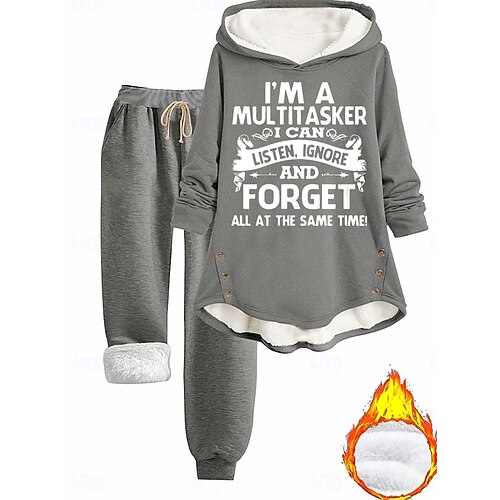 Per donna Felpa con Cappuccio Manica Lunga Con Cappuccio Grafico Lettera Coulisse Stampato Quotidiano Casuale Quotidiano Blu Rosa polverosa Grigio Autunno Vestibilità comoda