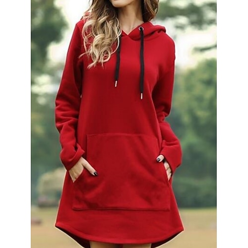 Per donna Mini Abito Abito con Cappuccio Vestito Casual Moda Moderno Quotidiano Ufficio Vacanza Vestibilità comoda Semplice Manica Lunga Con Cappuccio Nero Giallo Rosso Viola Primavera Autunno Inverno