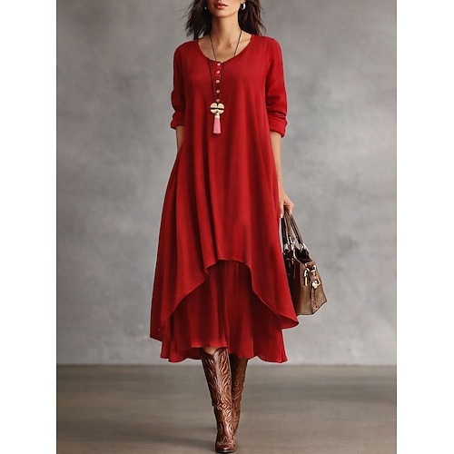 Per donna Abito Midi Abito a Tubino Abito a trapezio Casual Ferie Vestibilità comoda Tinta unica Manica Lunga Girocollo Blu Giallo Rosso Viola Primavera Autunno Inverno
