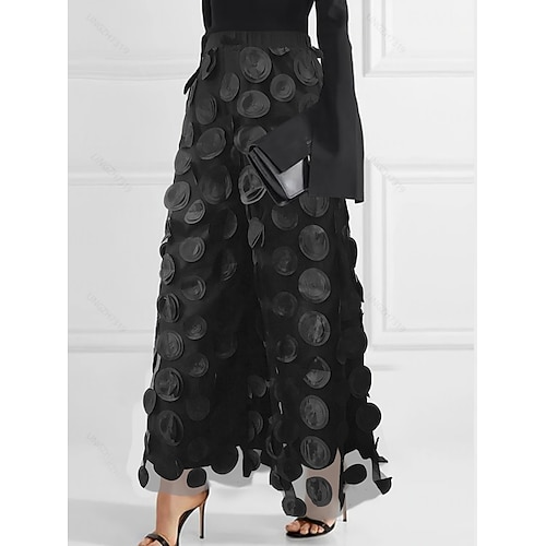 Per donna Gamba larga Chinos Streetwear Casual Lunghezza intera Vita media A Pois Rete Fascia Elastica Comodo Inelastico Quotidiano All'aperto Streetwear Nero Estate Primavera Vestibilità comoda