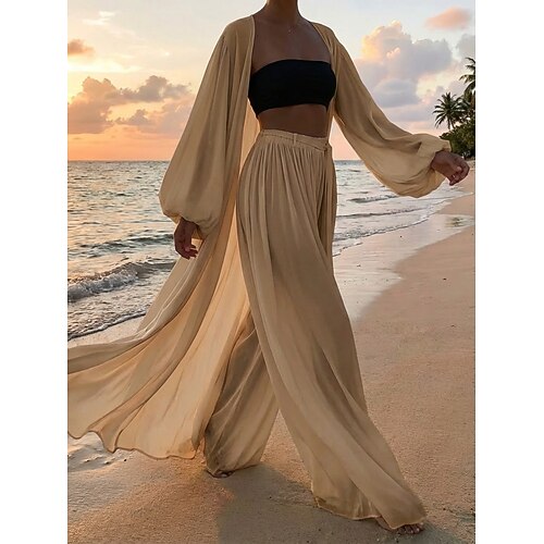 Per donna Set di biancheria in cotone Set di Pantaloni Bolero Top Manica Lunga Semplice Arricciato Moda Streetwear Quotidiano All'aperto Spiaggia Nero Bianco Marrone Estate Vestibilità comoda