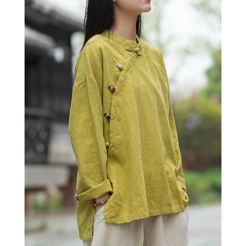 Per donna Attivo Streetwear Camicie di cotone e lino Misto cotone Blusa Manica Lunga Colletto a Camicia Tinta unica Dubbele Rij Knopen All'aperto Weekend Blu Nero Bianco Estate Vestibilità regolare