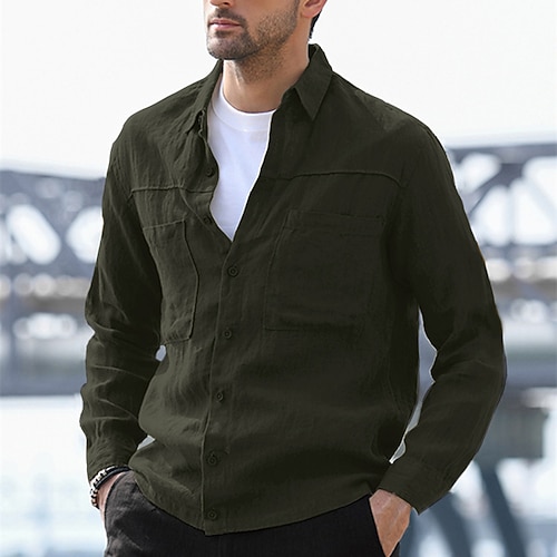 Per uomo Giacca Camicia Giacca di transizione Quotidiano Traspirante Tasca Estate Primavera Semplice Classico Bavero Regolare Nero Cachi Verde militare Beige Giacca