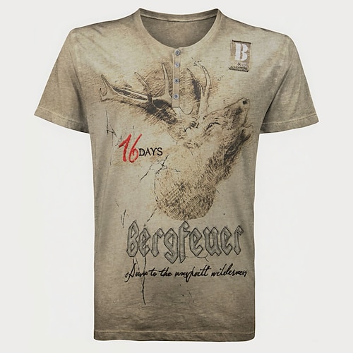 bavarese Monaco Tedesco Corte Maglietta Lederhosen Match Camicia Henley Cervo Grafico per Per uomo Adulti Stampa 3D per Carnevale Birra Oktoberfest Feste