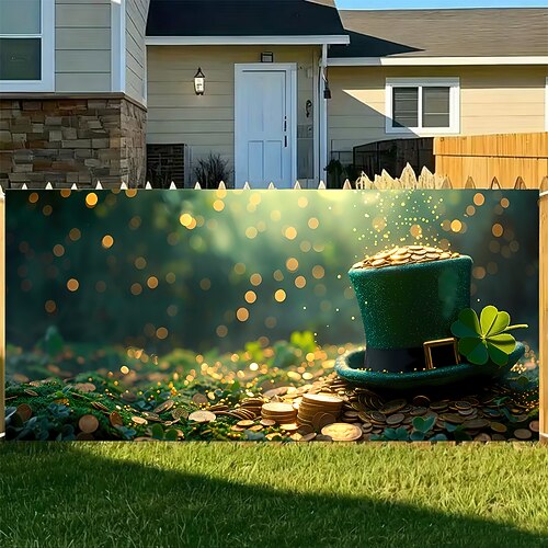 Festa di San Patrizio arazzo Copertura per porta del garage Grande appeso Cappello verde Carino 3D Da serata All'aperto Vacanze Sfondi di ripresa Yarda Arredamento per la casa