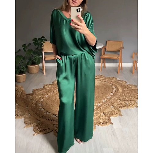 Per donna Normale Tuta Streetwear Tinta unica Manica 3/4 Gamba larga Girocollo Tasca Streetwear Quotidiano Vestibilità regolare Nero Rosa Vino Autunno