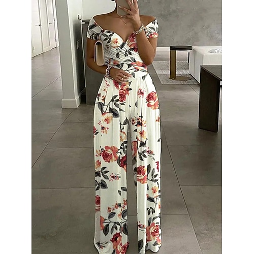 Per donna Normale Tuta Elegante Floreale Manica Corta Gamba larga Senza Spalle Vita alta Vacanza Quotidiano Vestibilità regolare Nero Bianco Rosso Estate