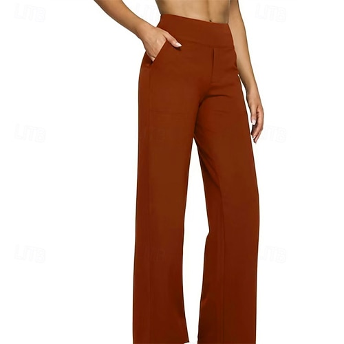 Per donna Gamba larga Chinos Casual Lunghezza al polpaccio Naturale Semplice Tasche Laterali Gamba larga Comodo Traspirabilità Casual Quotidiano Aalbicocca Nero Rosa Vino Primavera Autunno