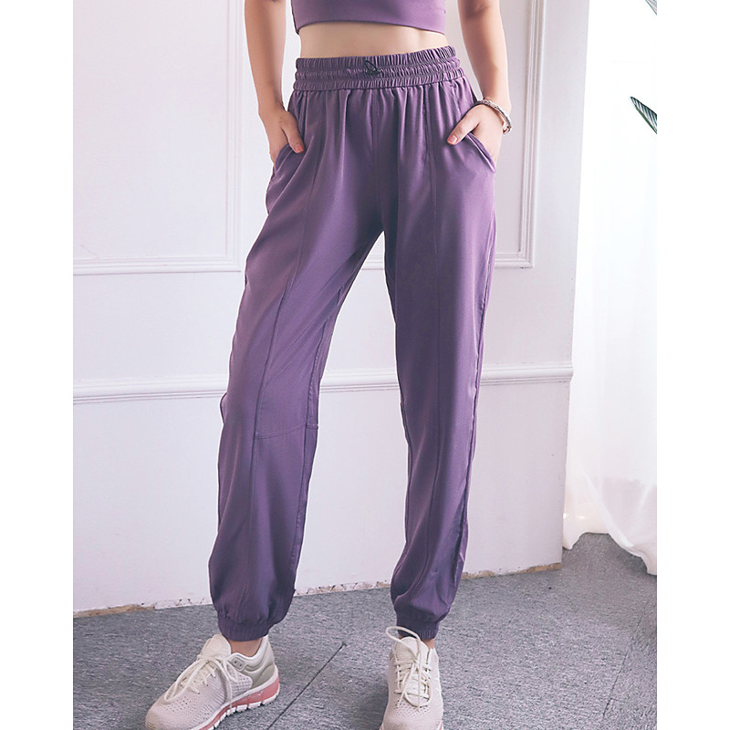 Women's fitness pants Pilates Pants Yoga Pants with Pockets Sun Protection Lightweight High Waist Gym Pilates Zumba Bottoms Solid Color Dark Grey Black Pink Fall Sports Activewear Micro-elastic Loose