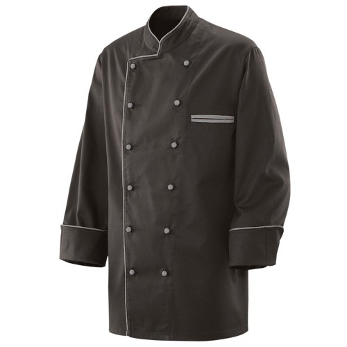 Exner 207 - Kochjacke schwarz langarm mit Paspel in verschiedenen Farben : silbergrau 65% Polyester 35%Baumwolle 220 g/m² S
