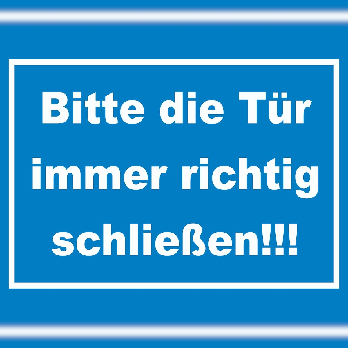 HB-Druck Schild Bitte die Tür immer richtig weiss-blau A4 (210x297mm)