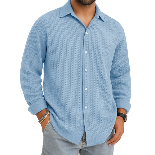 Per uomo Camicia Camicia casual Camicia con Bottoni Nero Bianco Rosso Blu marino Azzurro cielo Manica Lunga Semplice Bavero Casuale Quotidiano Abbigliamento Elegante Moda Casual