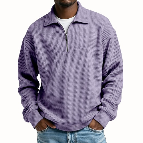 Per uomo Maglia Felpa a nido d'ape Maglione Felpa con zip corta Aalbicocca Nero Bianco Verde chiaro Borgogna Colletto Mao Semplice Tasca a marsupio Testurizzato Casuale Quotidiano Sport Outdoor