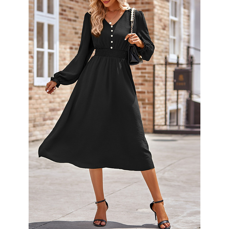 Women's Midi Dress Casual Dress A Line Dress Stylish Basic Casual Vacation Daily Regular Fit Plain Long Sleeve V Neck Black Army Green Summer Spring