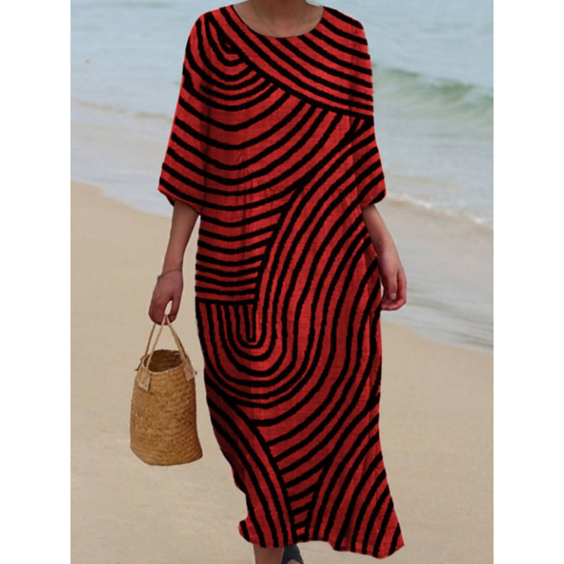 Women's Midi Dress Casual Dress Print Dress Fashion Modern Daily Beach Weekend Regular Fit Line 3/4 Length Sleeve Crew Neck Blue Red Purple Green Spring Fall