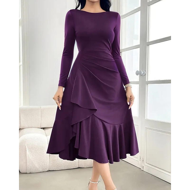 Women's Midi Dress Party Dress Cocktail Dress Elegant Modern Evening Party Party Cocktail Party Regular Fit Plain Long Sleeve Crew Neck Purple Spring Fall
