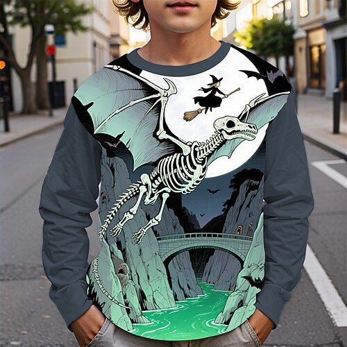 Halloween Jungen 3D Dinosaurier T-Shirt Langarm Frühling Herbst Mode Basic Kinder 4-12 Jahre Rundhalsausschnitt Outdoor Lässig Täglich Normale Passform