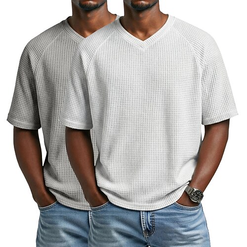2 pezzi t-shirt waffle da uomo maglietta a maniche corte scollo a V estate tinta unita testurizzata moda designer casual 2 pezzi multipack maniche raglan casual quotidiano esterno bianco nero top