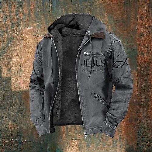 Per uomo Felpa con cappuccio a zip intera Giacca in Pile Felpa con cappuccio in pile Nero Verde militare Blu marino Marrone Grigio chiaro Con Cappuccio Lettera Croce Fede Cerniera Tasca Casuale