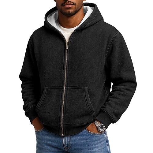 Per uomo Felpa con cappuccio Felpa con cappuccio a zip intera Felpa con cappuccio in pile Felpa con cappuccio foderata in pile Blu Nero Rosa Rosso Blu marino Con Cappuccio Semplice Cerniera Sport