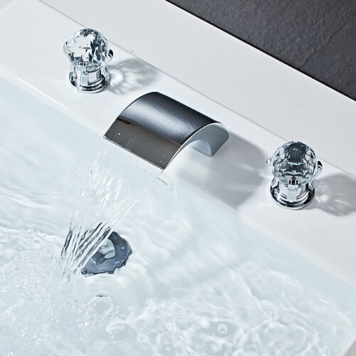 rubinetto per lavabo da bagno diffuso rubinetto a cascata, ottone 3 fori 2 rubinetto per lavabo con maniglia in cristallo montato sul ponte, rubinetto per acqua del vaso del lavabo con tubo flessibile caldo e freddo