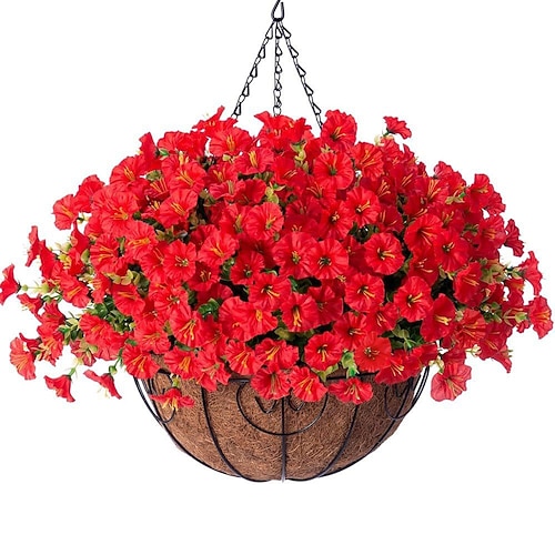 Fiori artificiali da esterno con vasi sospesi, petunie finte resistenti ai raggi UV con fioriera sospesa per la decorazione primaverile di porte e verande.