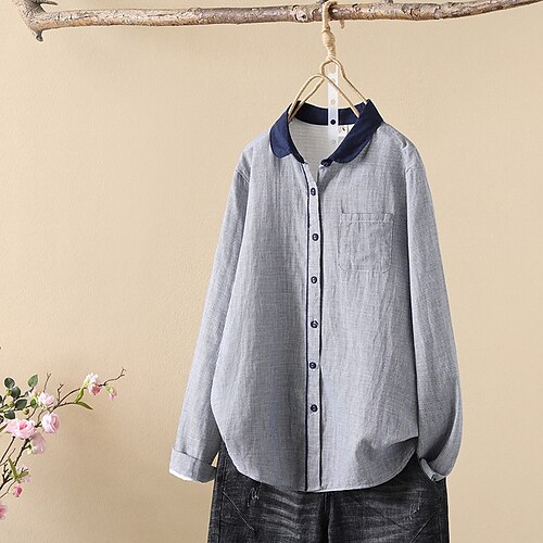 Per donna Camicia Tinta unica Semplice Attivo Quotidiano Elegante Manica Lunga Colletto a Camicia Top Regolari Lavoro Uscire Tasca Bottoni Bianco Blu Reale Grigio Primavera Autunno