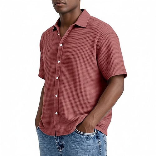 Per uomo Camicia Camicia a nido d'ape Tessuto Camicia casual Camicia con Bottoni Nero Bianco Verde chiaro Borgogna Blu reale Manica Corta Semplice Colletto a Camicia Casuale Quotidiano Abbigliamento