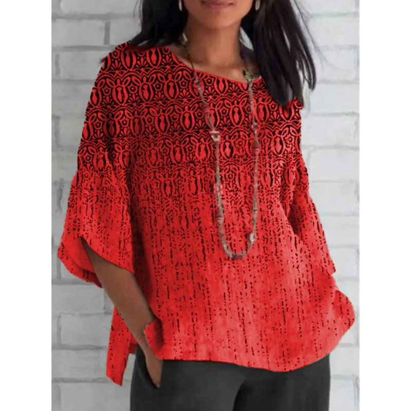 Damen Retro Bluse mit geschichtetem Rüschensleeve Vintage Grafik Geometrisch Vintage Alltag Stilvoll 3/4 Länge Sleeve Reguläre Tops Tägliches Urlaub Freizeit Tragen Print Wein Camel Orange Sommer