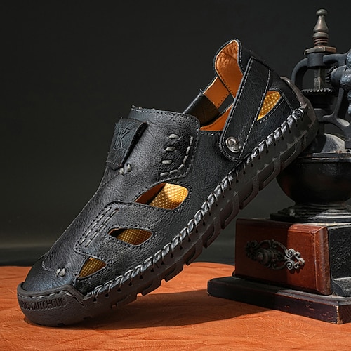 braune Kunstledersandalen für Herren mit perforiertem Design, verstellbarem Riemen und strapazierfähiger Sohle – bequem für die Freizeit sowie Outdoor- und Sommeraktivitäten