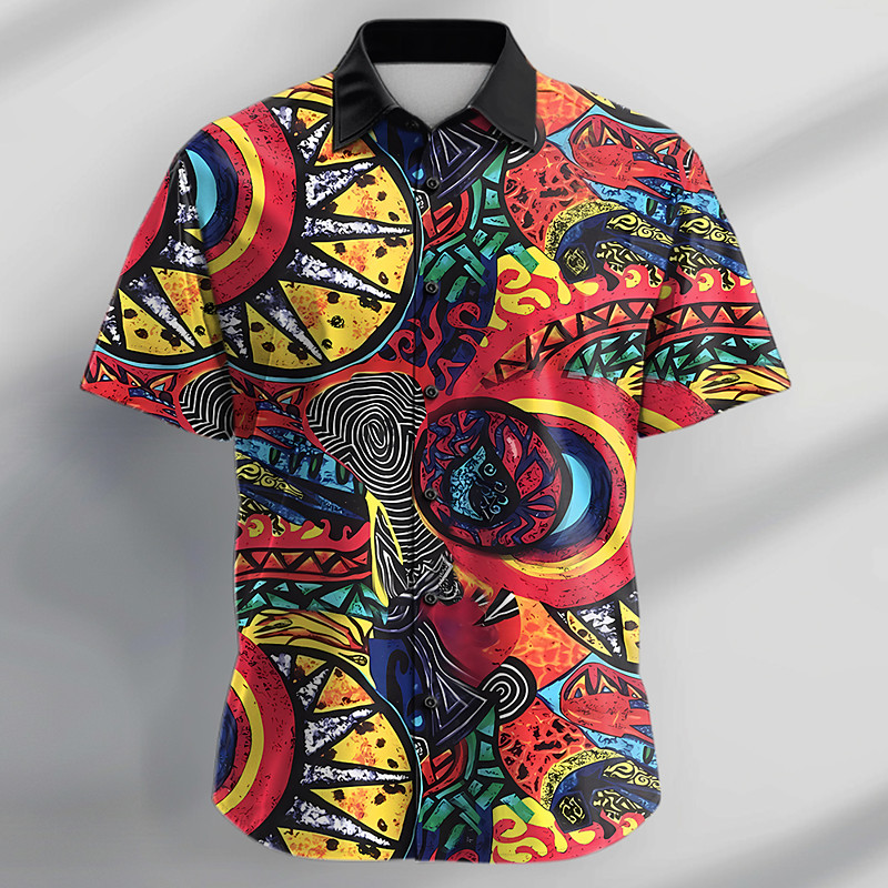 Men's Psychedelic Shirt Summer Hawaiian Shirt Button Up Shirt Short Sleeve Shirt Turndown Collared Shirts Casual Vacation Party Evening Wear Daily Black S M L